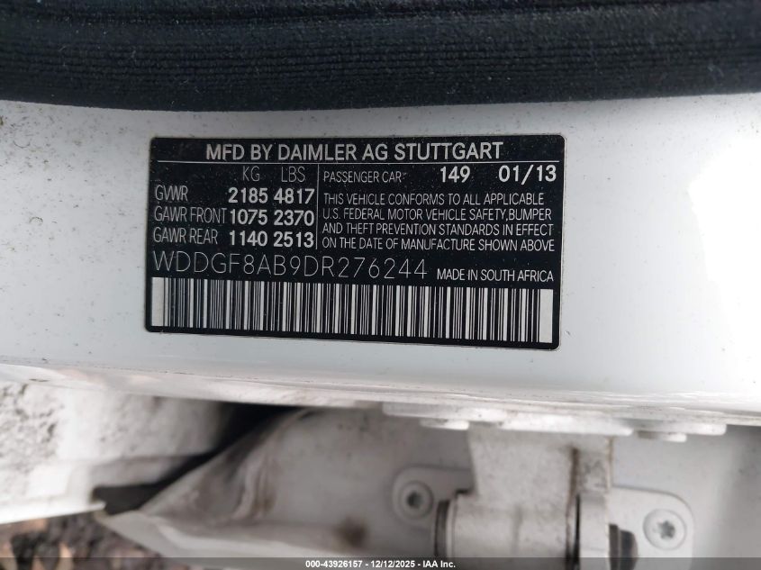 Колір БілийЦиліндри 6Привід Повний привідVIN WDDGF8AB9DR276244Стан Заводиться та їде (перевірено)Ушкодження Звичайний зносДата аукціона 2025-12-18