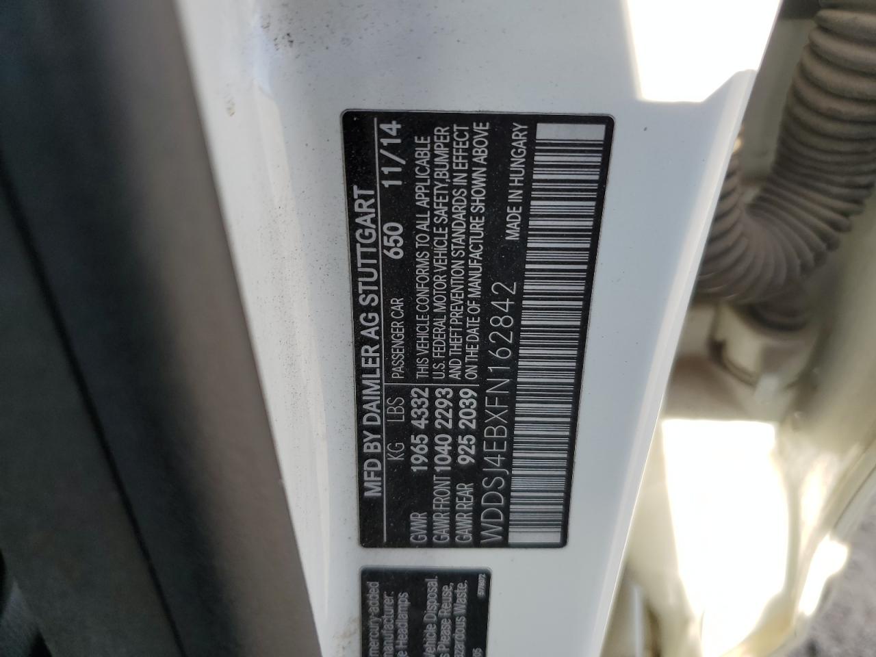 Колір БілийЦиліндри 4VIN WDDSJ4EBXFN162842Стан НевідомоУшкодження Незначні