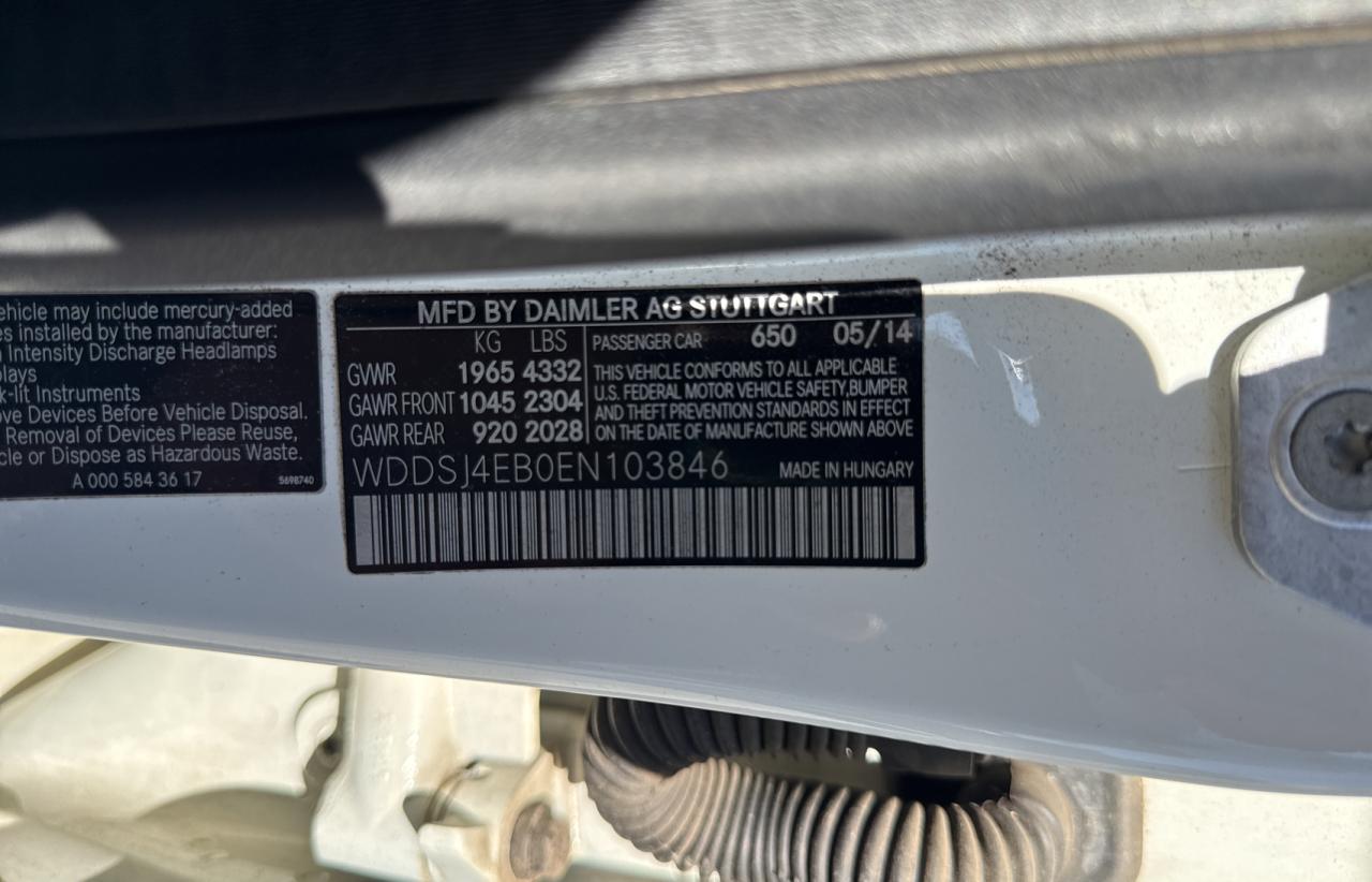 Колір БілийЦиліндри 4VIN WDDSJ4EB0EN103846Стан НевідомоУшкодження НезначніДата аукціона 2025-10-08