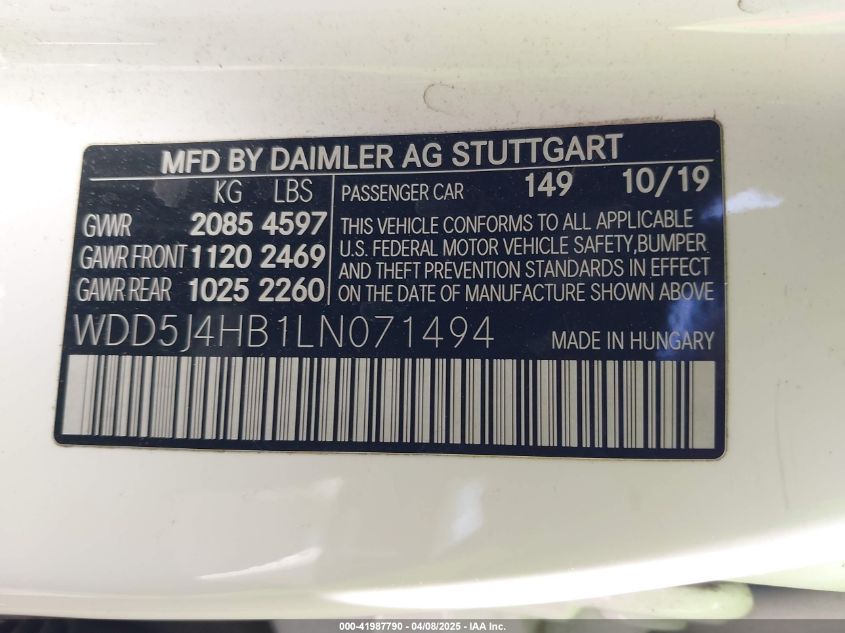 Колір БілийЦиліндри 4Привід Повний привідVIN WDD5J4HB1LN071494Стан Заводиться та їде (перевірено)Ушкодження ЗадняДата аукціона 2025-10-09