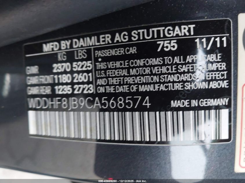 Колір СірийЦиліндри 6Привід Повний привідVIN WDDHF8JB9CA568574Стан СтаціонарноУшкодження Пожежа інтер`єра