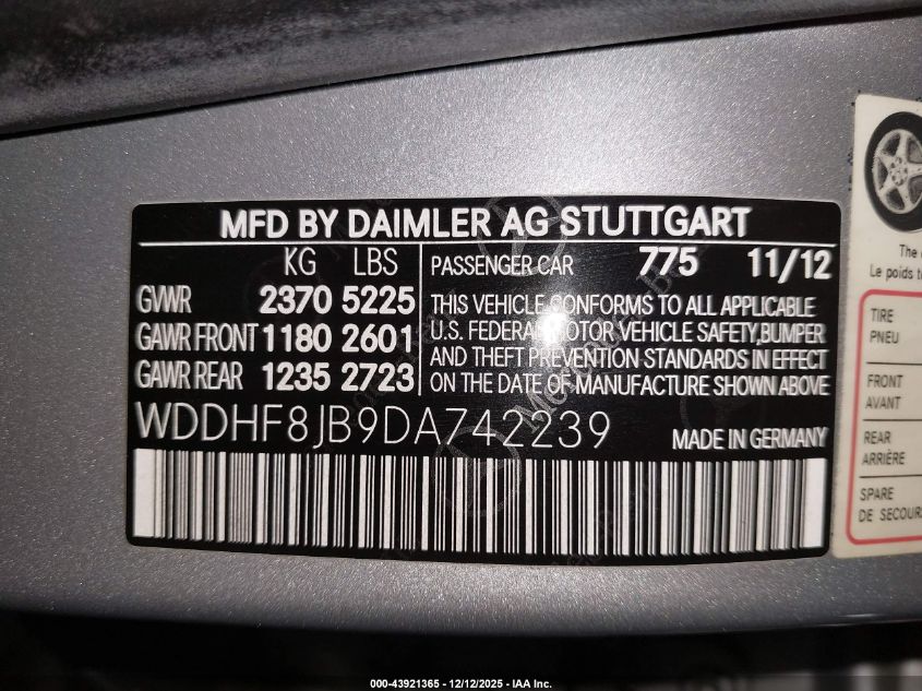 2013 MERCEDES-BENZ E-CLASS - WDDHF8JB9DA742239, колір - Срібний, 3.5, Бензин, Повний привід із США