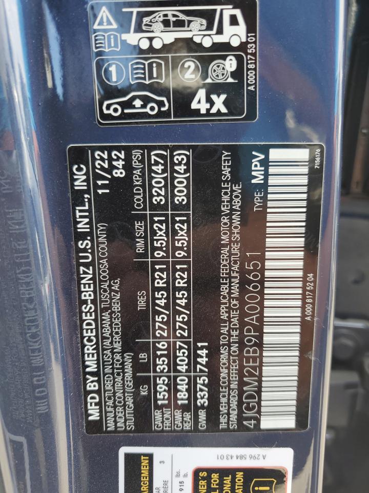 2023 MERCEDES-BENZ EQS - 4JGDM2EB9PA006651, колір - Синій, , Електричний, Повний привід із США