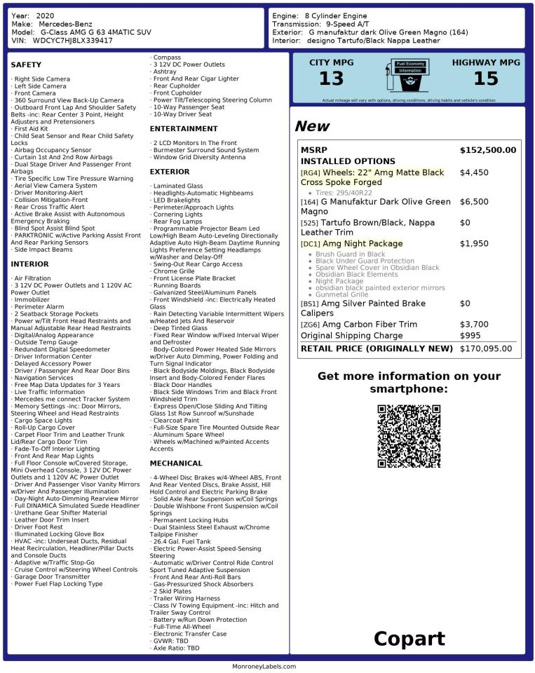 2020 MERCEDES-BENZ G-CLASS - WDCYC7HJ8LX339417, колір - Сірий, 4.0, Бензин, Повний привід із США