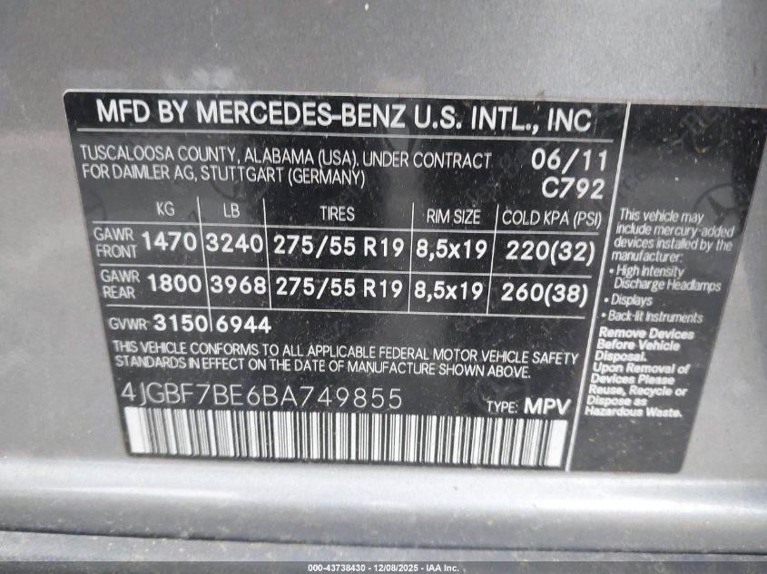 2011 MERCEDES-BENZ GL-CLASS 550 4MATIC