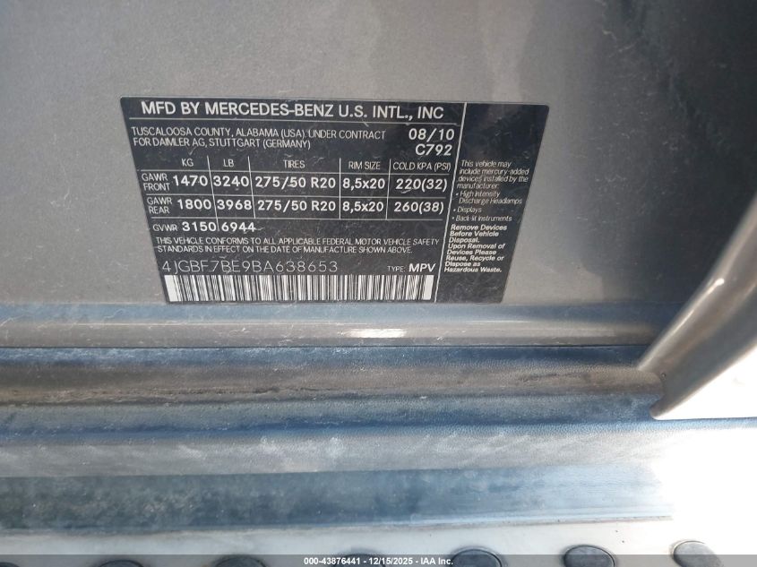2011 MERCEDES-BENZ GL-CLASS - 4JGBF7BE9BA638653, колір - , 4.6, Бензин, Повний привід із США