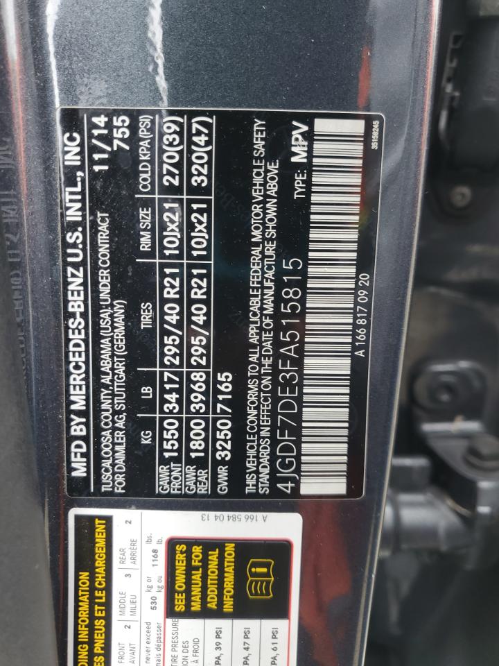 2015 MERCEDES-BENZ GL-CLASS - 4JGDF7DE3FA515815, колір - Деревне вугілля, 4.6, Бензин, Повний привід із США