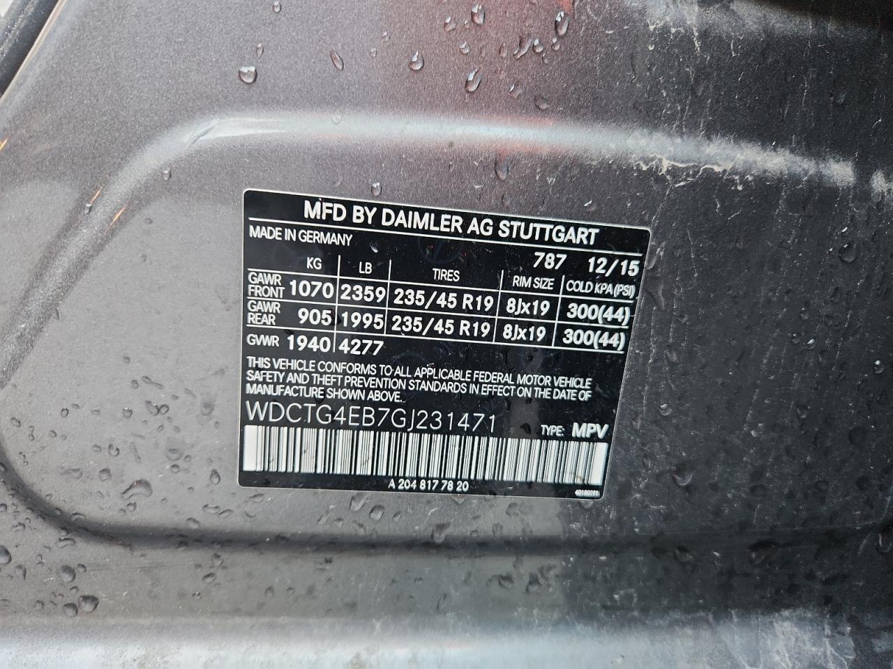 Колір СірийЦиліндри 4VIN WDCTG4EB7GJ231471Стан НевідомоУшкодження НезначніДата аукціона 2025-10-13