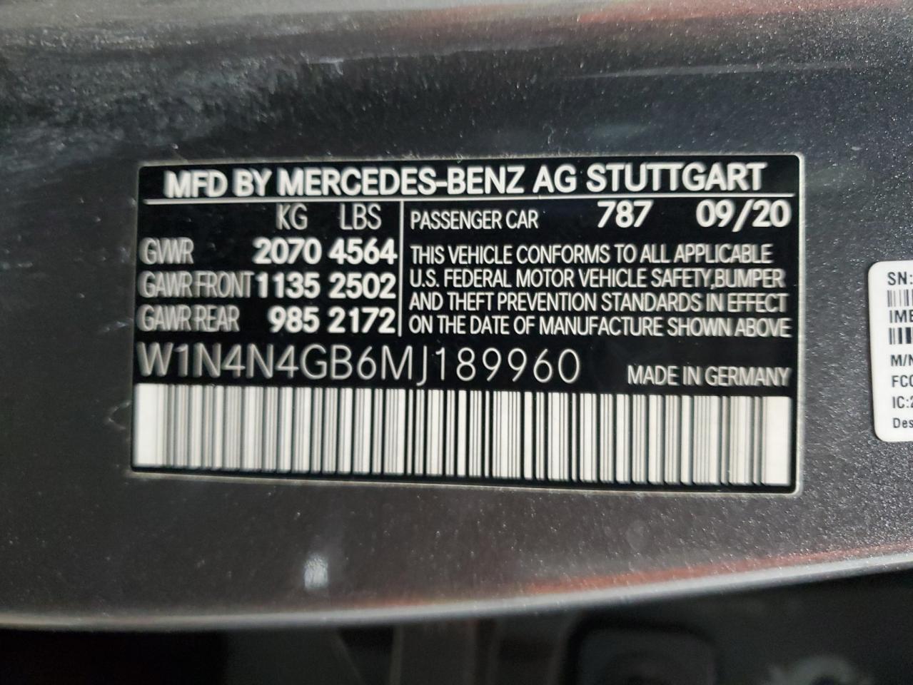 Колір СірийЦиліндри 4VIN W1N4N4GB6MJ189960Стан Заводиться та їде (перевірено)Ушкодження Передня або задняДата аукціона 2025-10-09