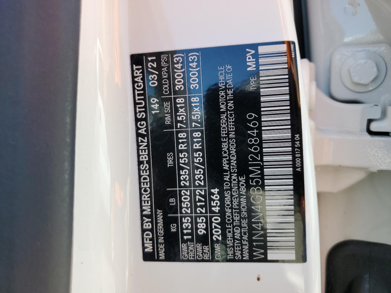 Колір БілийЦиліндри 4VIN W1N4N4GB5MJ268469Стан НевідомоУшкодження Передня або задняДата аукціона 2025-10-10