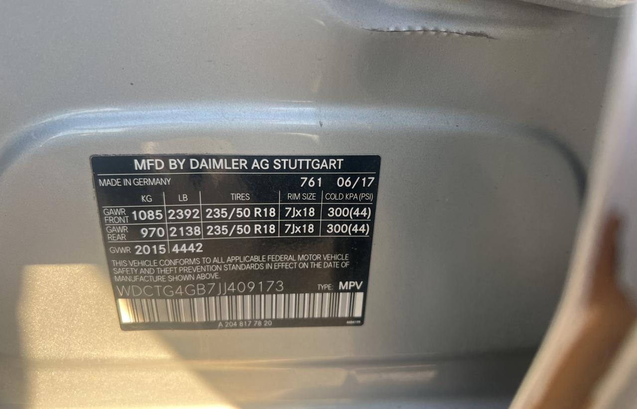 Колір СрібнийЦиліндри 4Привід Повний привідVIN WDCTG4GB7JJ409173Стан Заводиться та їде (перевірено)Ушкодження НезначніДата аукціона 2025-10-08