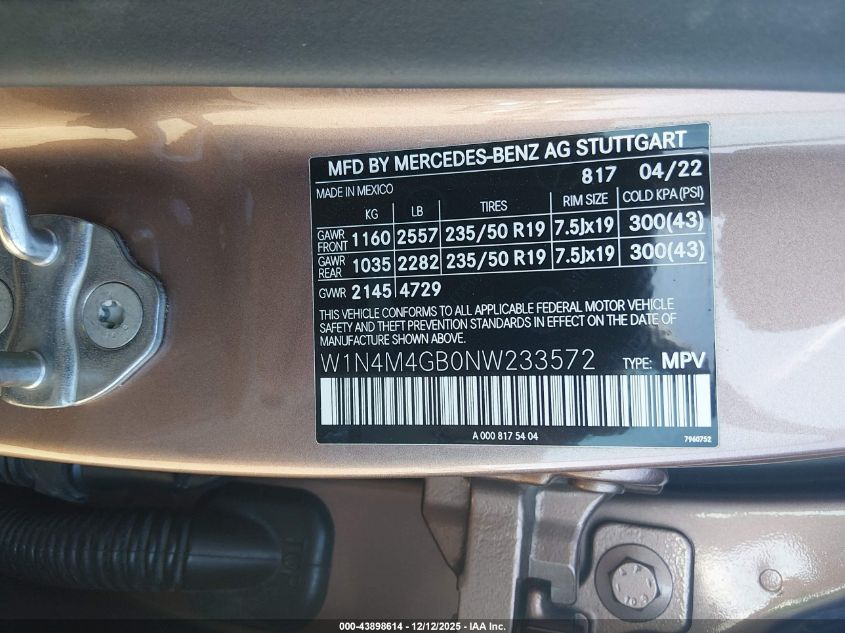 2022 MERCEDES-BENZ GLB-CLASS - W1N4M4GB0NW233572, колір - Шампань, 2.0, Бензин, Передній привід із США