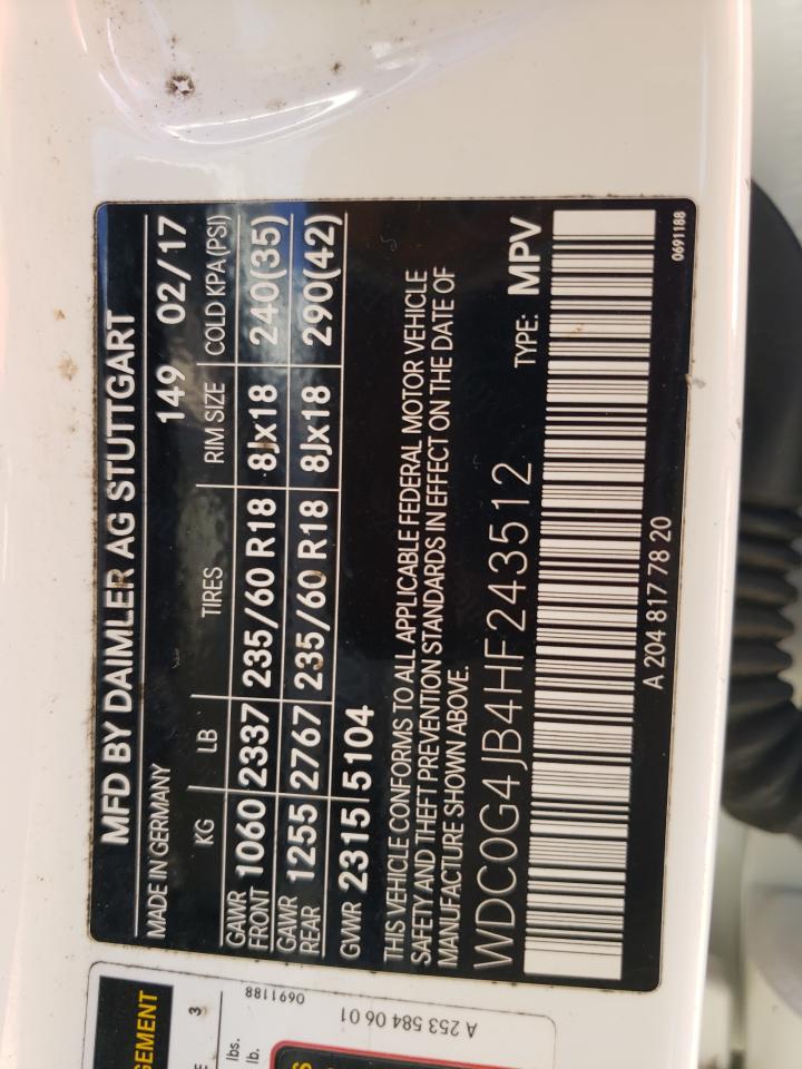 2017 MERCEDES-BENZ GLC-CLASS - WDC0G4JB4HF243512, колір - Білий, 2.0, Бензин, Задній привід із США