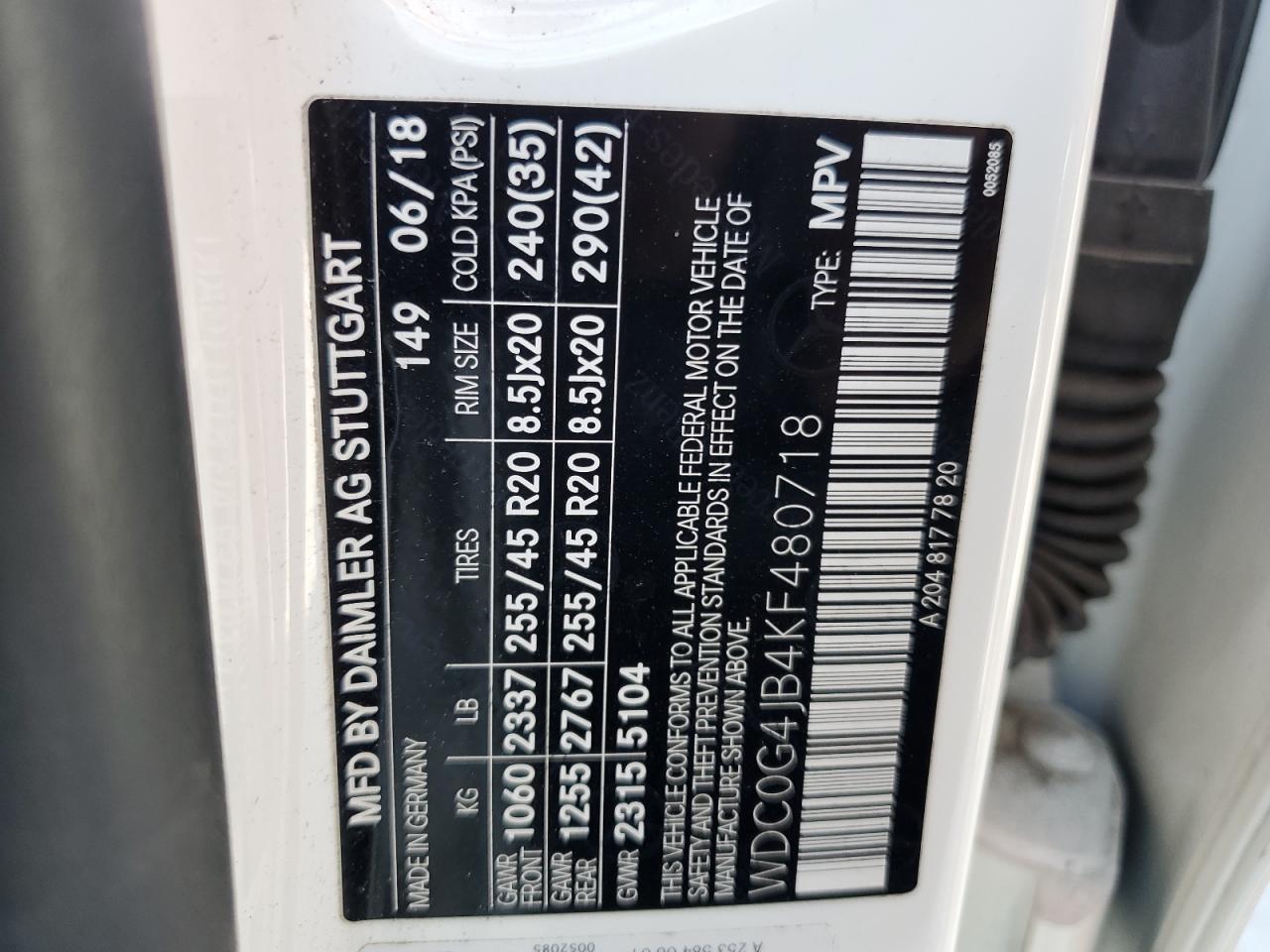 Колір БілийЦиліндри 4Привід Задній привідVIN WDC0G4JB4KF480718Стан НевідомоУшкодження НезначніДата аукціона 2025-10-13