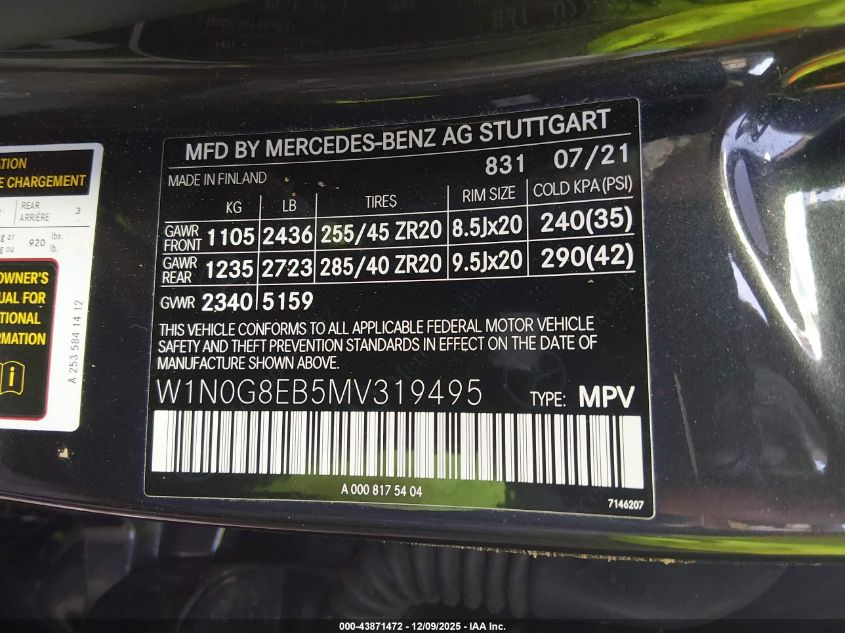 2021 MERCEDES-BENZ GLC-CLASS - W1N0G8EB5MV319495, колір - Чорний, 2.0, Бензин, Повний привід із США