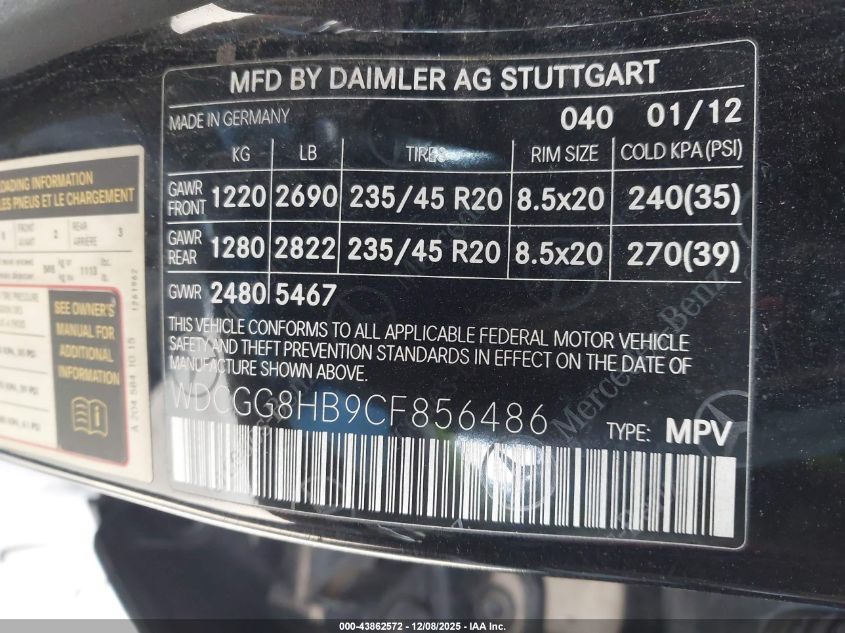 Колір ЧорнийЦиліндри 6Привід Повний привідVIN WDCGG8HB9CF856486Стан Заводиться та їде (перевірено)Ушкодження Передня або задняДата аукціона 2025-12-19