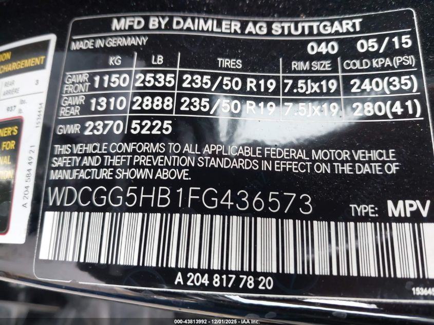 2015 MERCEDES-BENZ GLK-CLASS - WDCGG5HB1FG436573, колір - Чорний, 3.5, Бензин, із США