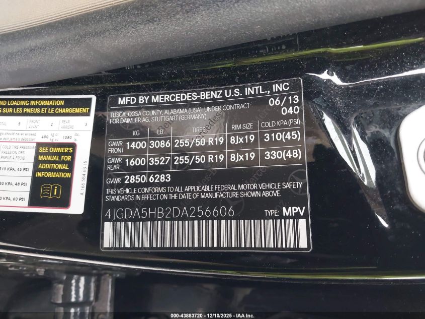 2013 MERCEDES-BENZ M-CLASS - 4JGDA5HB2DA256606, колір - Чорний, 3.5, Бензин, Повний привід із США