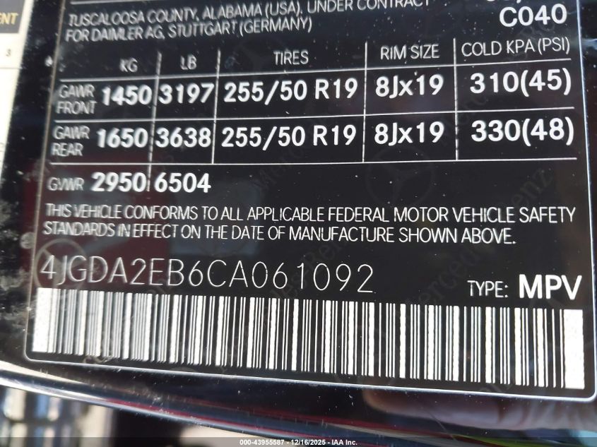 2012 MERCEDES-BENZ M-CLASS - 4JGDA2EB6CA061092, колір - Чорний, 3.0, Дизель, Повний привід із США