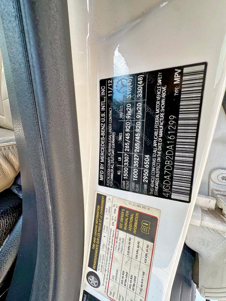 2013 MERCEDES-BENZ M-CLASS - 4JGDA7DB2DA161299, колір - Білий, 4.6, Бензин, Повний привід із США