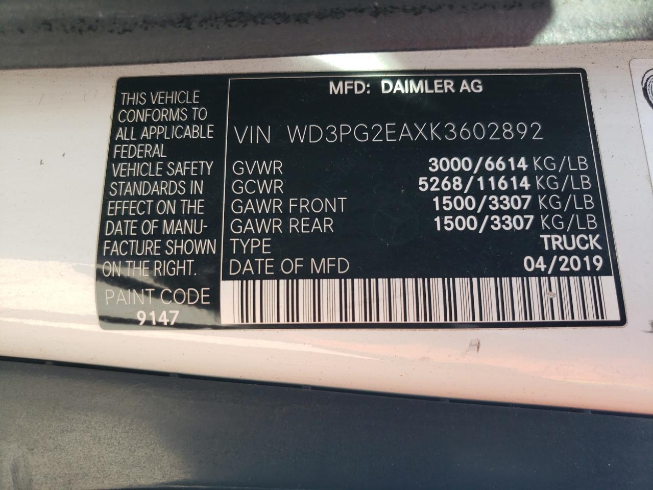 2019 MERCEDES-BENZ METRIS - WD3PG2EAXK3602892, колір - Білий, 2.0, Бензин, Задній привід із США