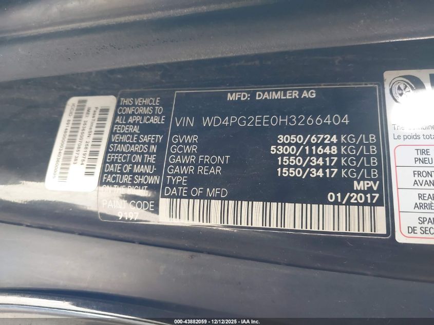 2017 MERCEDES-BENZ METRIS - WD4PG2EE0H3266404, колір - Чорний, 2.0, Бензин, Задній привід із США
