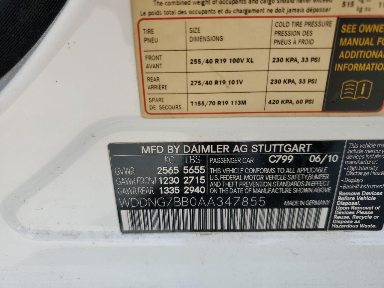 2010 MERCEDES-BENZ S-CLASS - WDDNG7BB0AA347855, колір - Білий, 5.5, Бензин, Задній привід із США