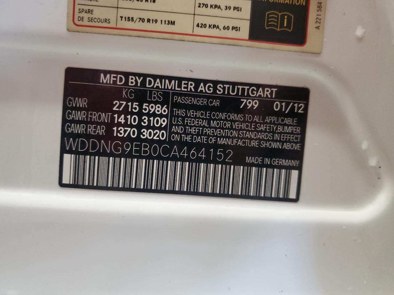 Колір БілийЦиліндри 8Привід Повний привідVIN WDDNG9EB0CA464152Стан Заводиться та їде (перевірено)Ушкодження НезначніДата аукціона 2025-10-09