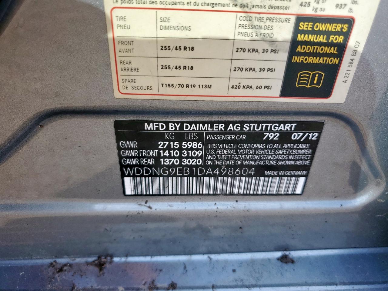 Колір СірийЦиліндри 8Привід Повний привідVIN WDDNG9EB1DA498604Стан НевідомоУшкодження Передня або задня