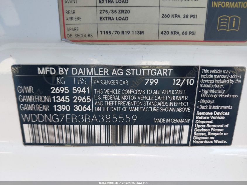 Колір БілийЦиліндри 8Привід Задній привідVIN WDDNG7EB3BA385559Стан Заводиться та їде (перевірено)Ушкодження Задня ліва
