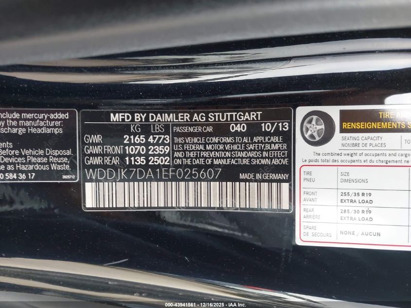 Колір ЧорнийЦиліндри 8Привід Задній привідVIN WDDJK7DA1EF025607Стан Заводиться та їде (перевірено)Ушкодження Передня права
