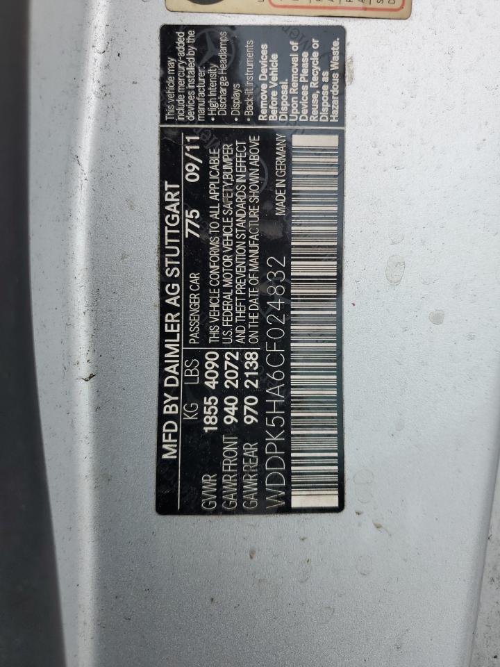 2012 MERCEDES-BENZ SLK-CLASS - WDDPK5HA6CF024832, колір - Срібний, 3.5, Бензин, Задній привід із США