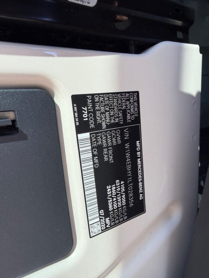 2020 MERCEDES-BENZ SPRINTER - W1W4EBHY1LT028356, колір - Білий, 3.0, Дизель, Задній привід із США