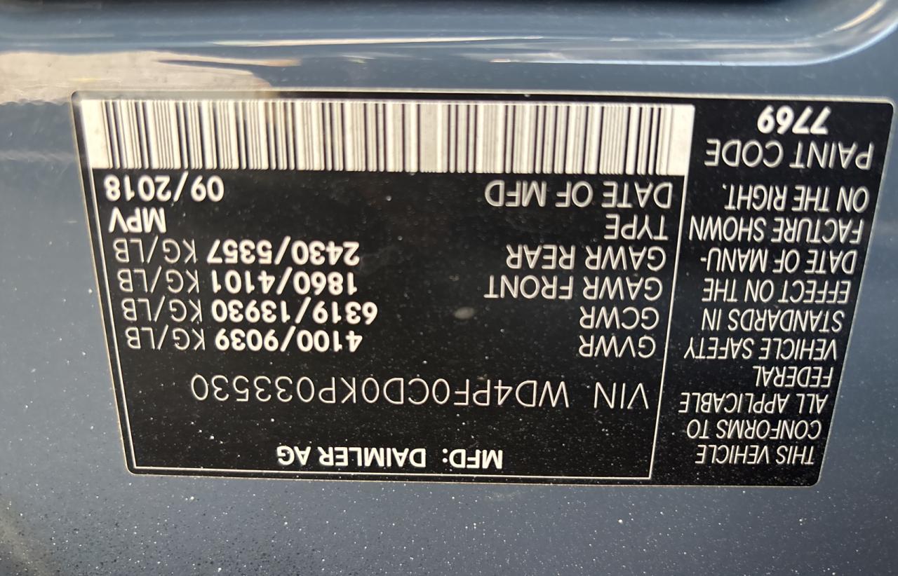 Колір СинійЦиліндри 6Привід Задній привідVIN WD4PF0CD0KP033530Стан Заводиться та їде (перевірено)Ушкодження НезначніДата аукціона 2025-10-08