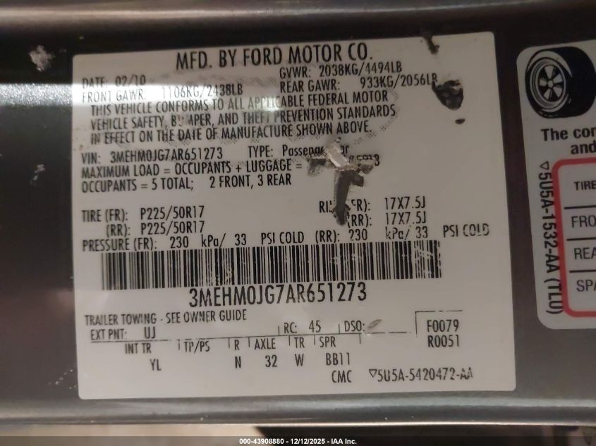 2010 MERCURY MILAN - 3MEHM0JG7AR651273, колір - Сірий, 3.0, Бензин, Передній привід із США