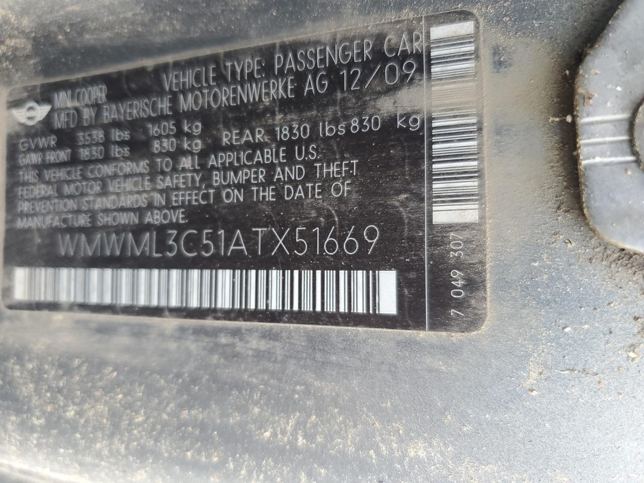 2010 MINI COOPER - WMWML3C51ATX51669, колір - Сірий, 1.6, Бензин, із США