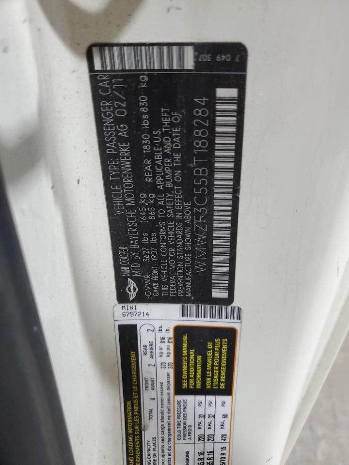 2011 MINI COOPER - WMWZF3C55BT188284, колір - Кремовий, 1.6, Бензин, із США