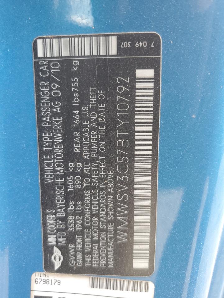2011 MINI COOPER - WMWSV3C57BTY10792, колір - Синій, 1.6, Бензин, із США