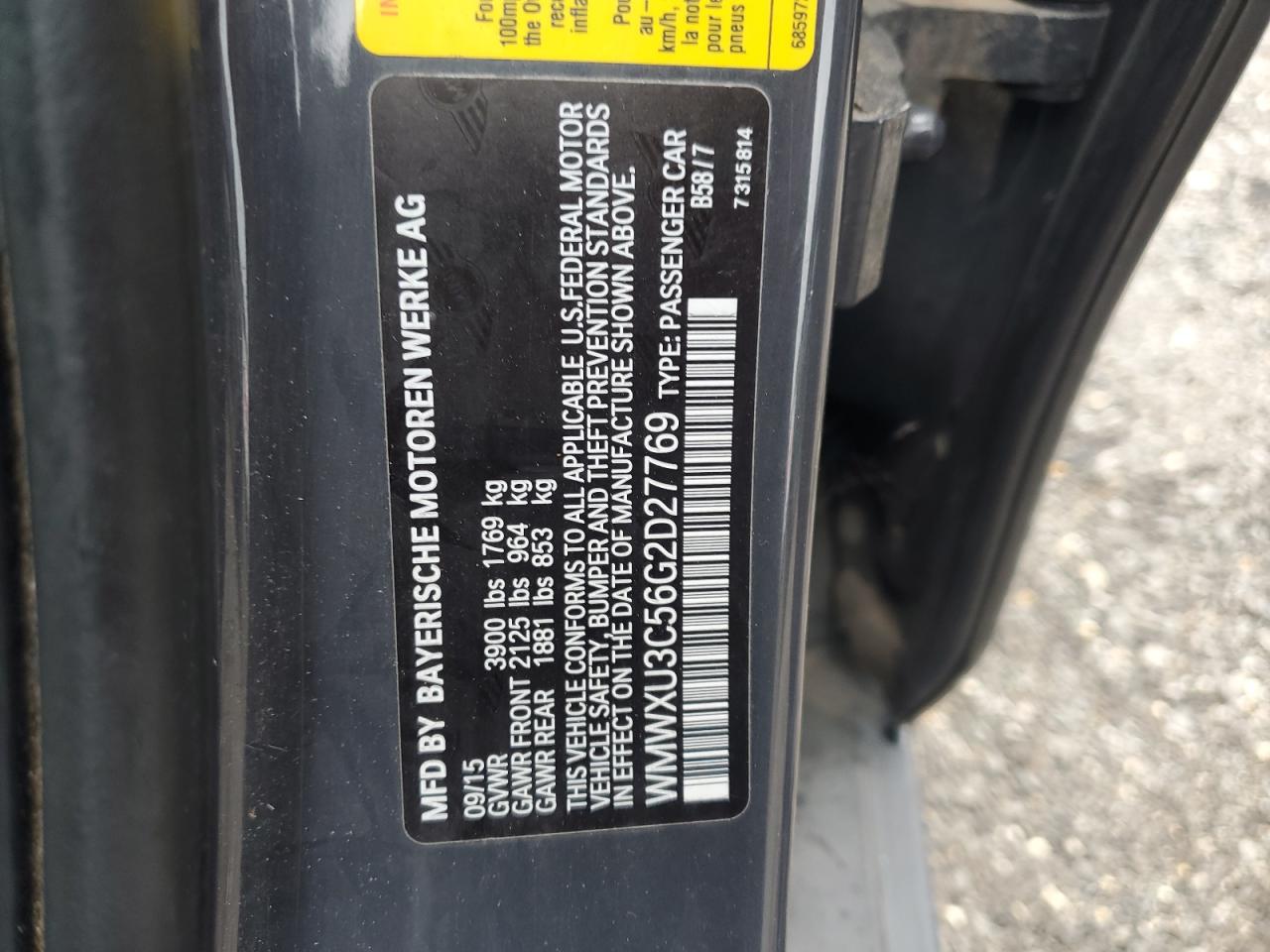 Колір СірийЦиліндри 4VIN WMWXU3C56G2D27769Стан Заводиться та їде (перевірено)Ушкодження ЗадняДата аукціона 2025-10-07