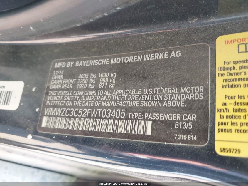 Колір ЧорнийЦиліндри 4Привід Передній привідVIN WMWZC3C52FWT03405Стан Заводиться та їде (перевірено)Ушкодження Передня або задня