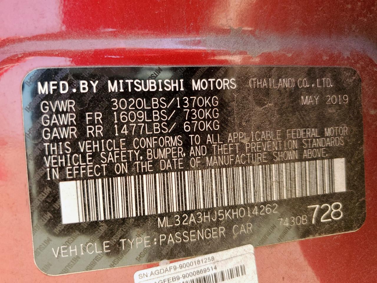 2019 MITSUBISHI MIRAGE - ML32A3HJ5KH014262, колір - Червоний, 1.2, Бензин, із США