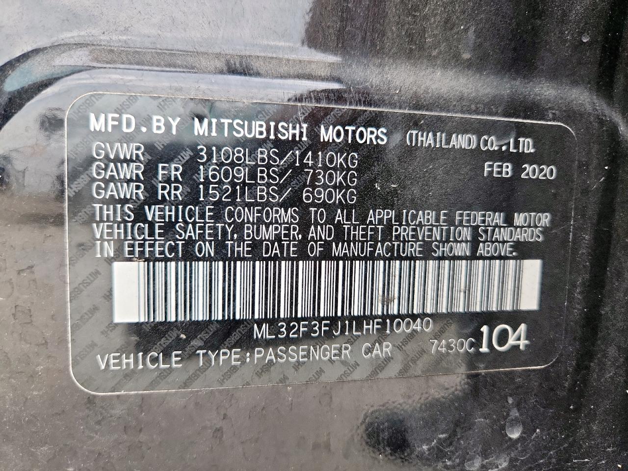 2020 MITSUBISHI MIRAGE - ML32F3FJ1LHF10040, колір - Чорний, 1.2, Бензин, із США