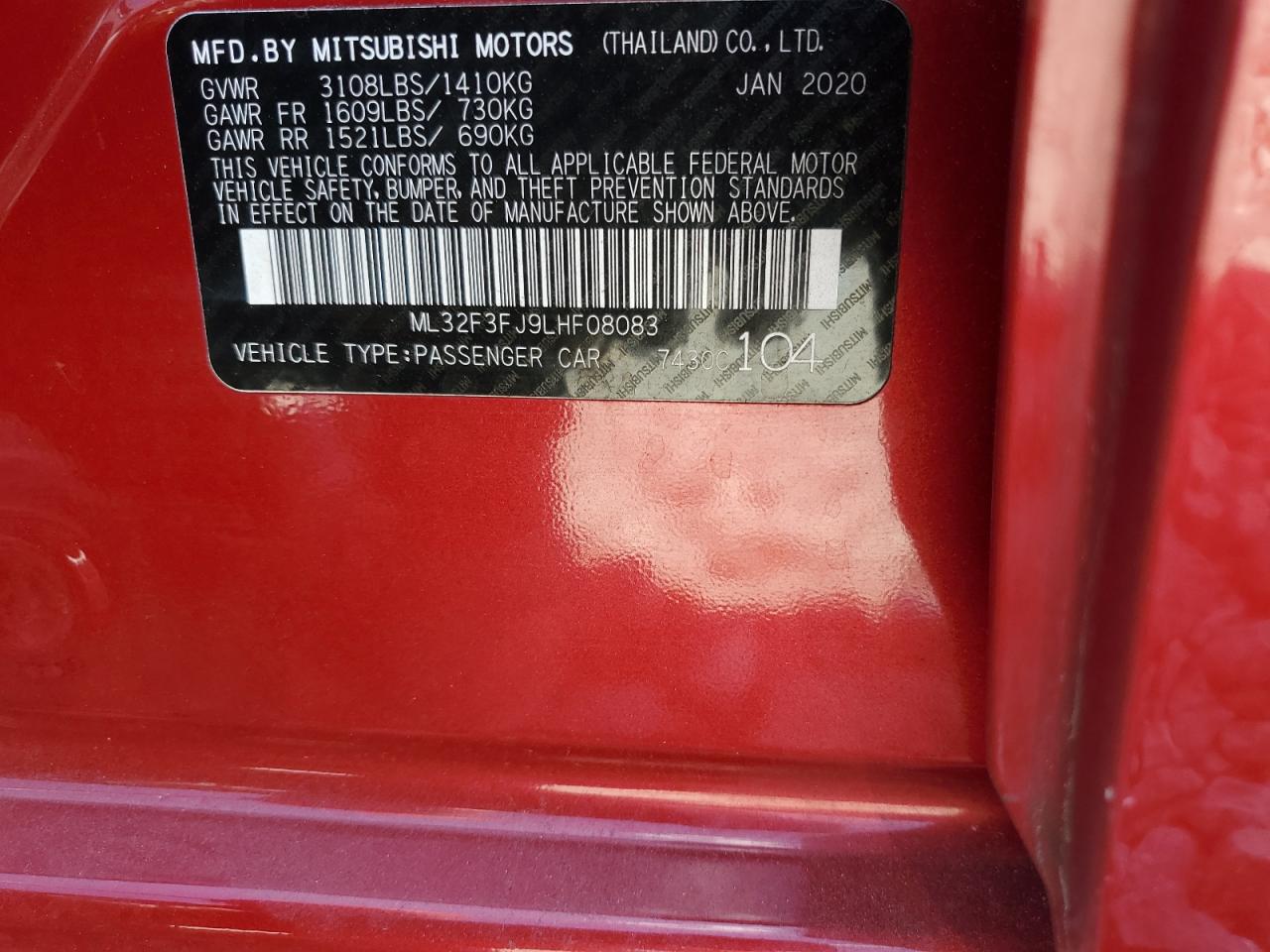2020 MITSUBISHI MIRAGE - ML32F3FJ9LHF08083, колір - Червоний, 1.2, Бензин, із США