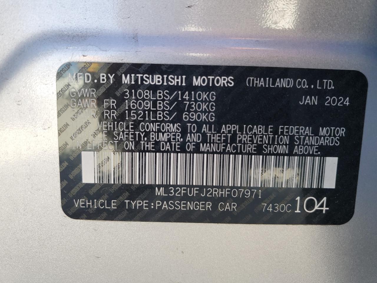 2024 MITSUBISHI MIRAGE - ML32FUFJ2RHF07971, колір - Срібний, 1.2, Бензин, із США