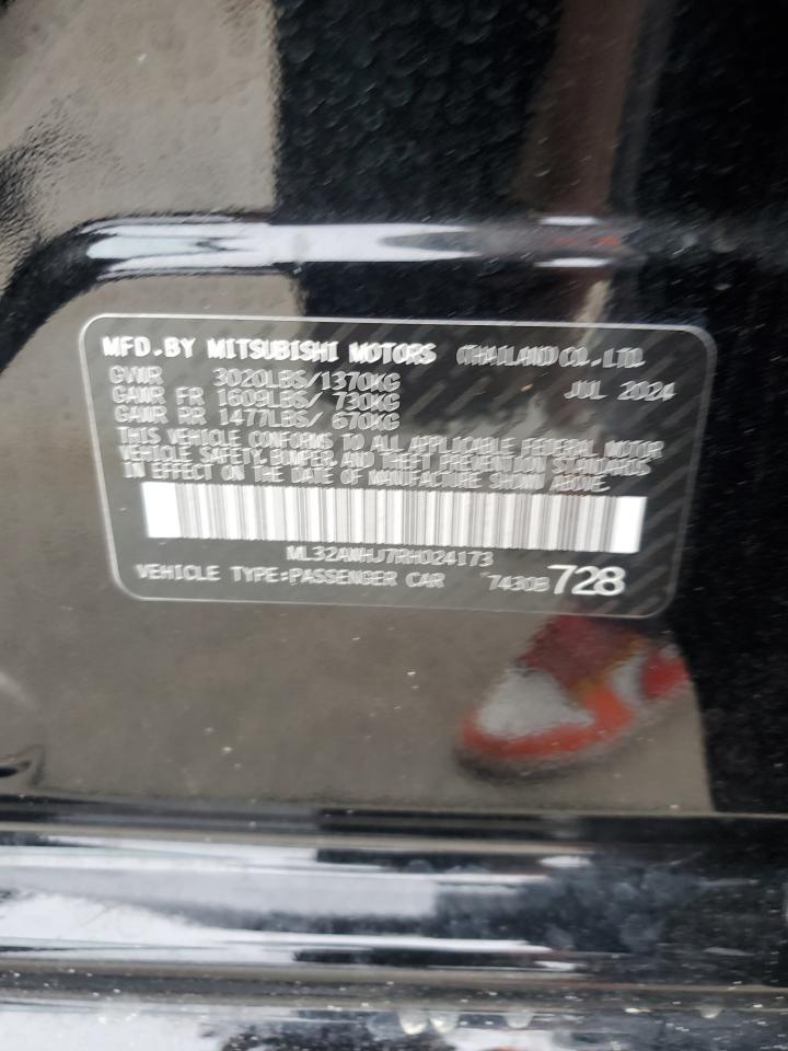 2024 MITSUBISHI MIRAGE - ML32AWHJ7RH024173, колір - Чорний, 1.2, Бензин, із США