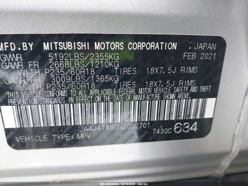 Колір СрібнийЦиліндри 4Привід Повний привідVIN JA4A4TA80NZ002701Стан Заводиться та їде (перевірено)Ушкодження Передня або задня