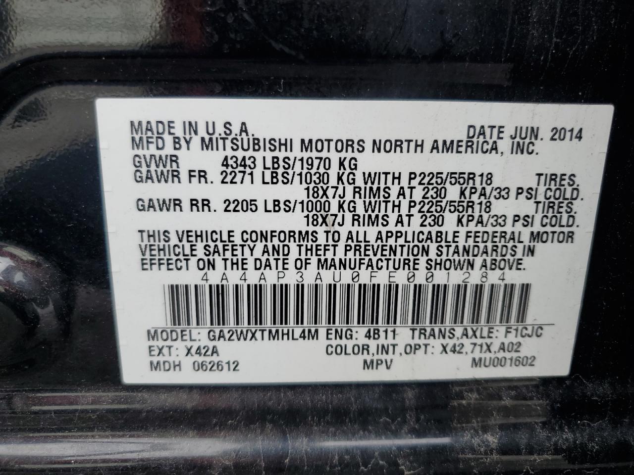Колір ЧорнийЦиліндри 4VIN 4A4AP3AU0FE001284Стан НевідомоУшкодження НезначніДата аукціона 2025-10-08