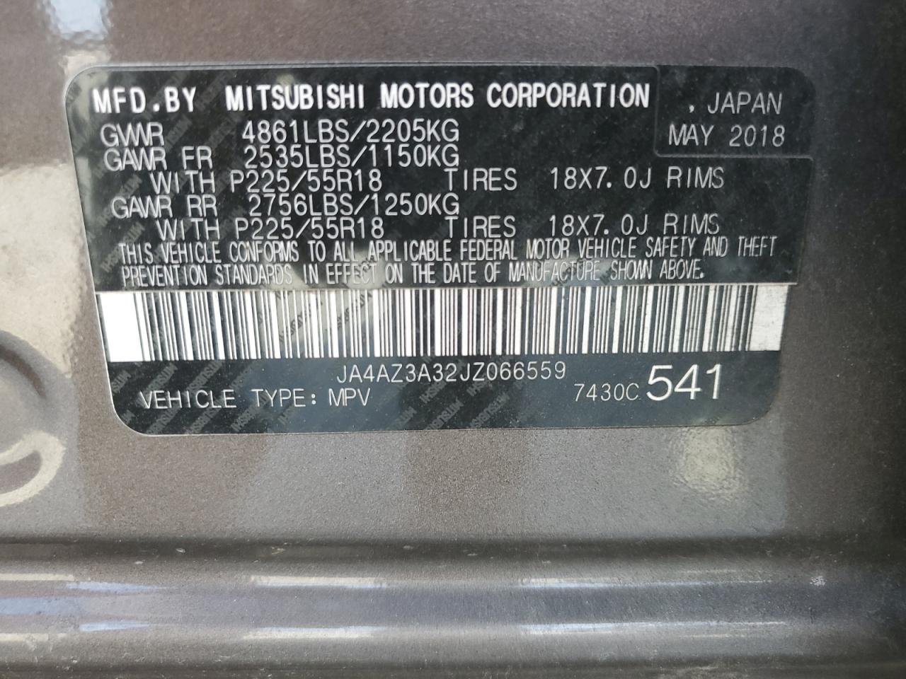 2018 MITSUBISHI OUTLANDER - JA4AZ3A32JZ066559, колір - Коричневий, 2.4, Бензин, Повний привід із США