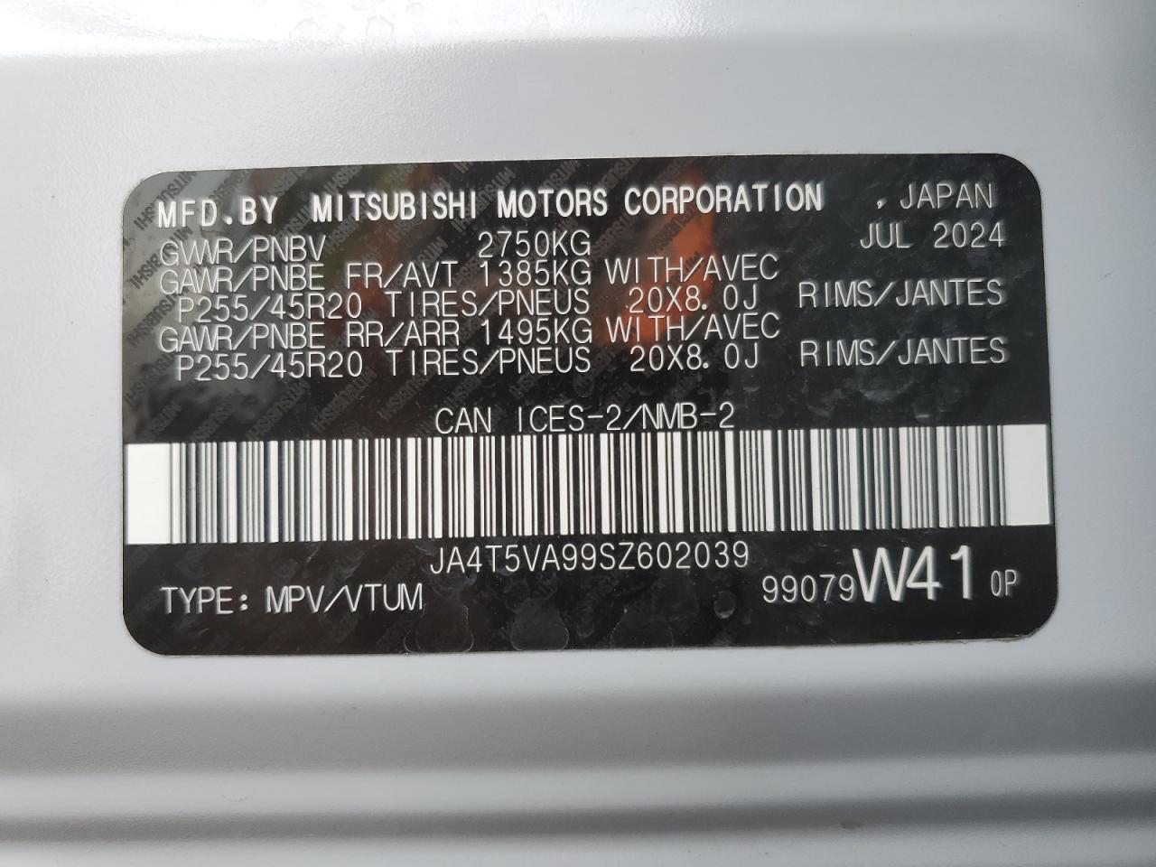 2025 MITSUBISHI OUTLANDER - JA4T5VA99SZ602039, колір - Білий, 2.4, Гібрид, Повний привід із США