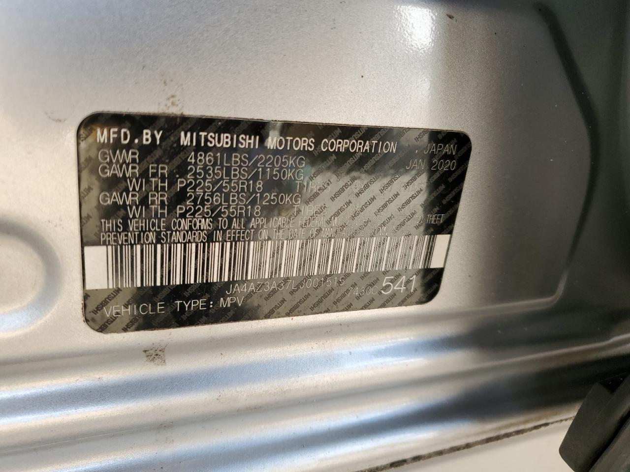 2020 MITSUBISHI OUTLANDER - JA4AZ3A37LJ001515, колір - Срібний, 2.4, Бензин, Повний привід із США